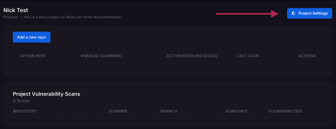 1. Once authenticated head back into the project to add your first code repository you’d like to scan