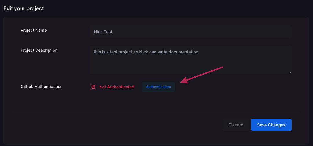 Select “Authenticate” under the Github Authentication section and enter the credentials for the Github user you’d like to authenticate